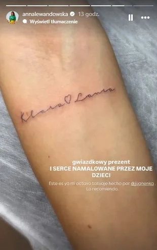 Anna Lewandowska cieszy się znaczną popularnością na Instagramie. Jej profil obserwuje tam obecnie ponad 5,7 miliona osób. W grudniu 2025 roku trenerka podzieliła się z nimi nagraniem, na którym zaprezentowała wspomniany tatuaż. Na jej ręce pojawiły się imiona Klara i Laura połączone serduszkiem narysowanym przez same dziewczynki. Anna Lewandowska dołączyła do nagrania następujący opis:
