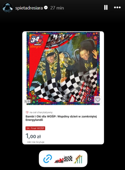 bambi i Oki, a właściwie Oskar Kamiński i Michalina Włodarczyk, potwierdzili swój związek w 2024 roku i od tamtej pory pozostają jedną z najpopularniejszych par w świecie muzycznym. Zwycięzca aukcji, którą przygotowali dla WOŚP, będzie miał okazję bliżej ich poznać podczas dnia w zamkniętej Energylandii. Jak można przeczytać w opisie ich licytacji:
