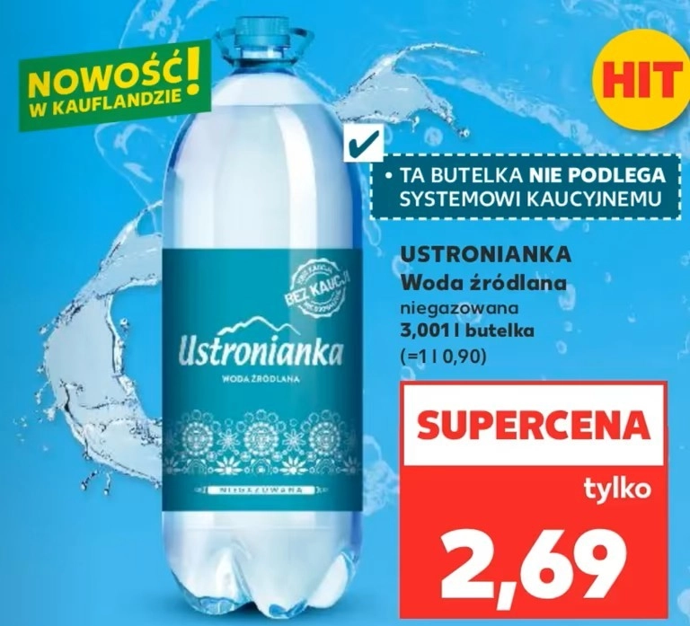 W gazetce promocyjnej sieci Kaufland obowiązującej w dniach 2-8 października 2025 roku znalazła się woda mineralna Ustronianka w butelce o pojemności... 3,001 litra. Została ona oznakowana jako "niepodlegająca kaucji" i można ją kupić w cenie 2,69 złotych. Portal Money.pl postanowił zapytać producenta o to, dlaczego zdecydował się na taki ruch. Karina Sodzawiczny, asystentka prezesa zarządu, przesłała następujące oświadczenie: