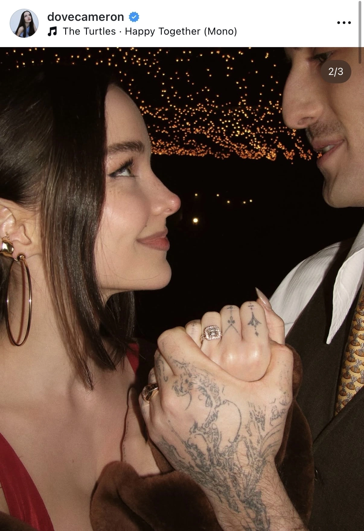 Pierwsze spekulacje na temat zaręczyn Damiano Davida i Dove Cameron pojawiły się już pod koniec października 2025 roku. Wówczas fotoreporterzy przyłapali zakochanych w Sydney, a na palcu aktorki błyszczał imponujący pierścionek z diamentem. Informację o rzekomych zaręczynach podał portal TMZ, jednak para postanowiła zachować ostrożność i nie komentowała tych doniesień, czekając na odpowiedni moment, by ogłosić szczęśliwą nowinę osobiście. Ten moment nadszedł na początku 2026 roku, kiedy Damiano David podzielił się w mediach społecznościowych zdjęciami ze swoją ukochaną. Na fotografiach Dove z dumą prezentowała pierścionek zaręczynowy, a post wspólnie podpisali słowami: