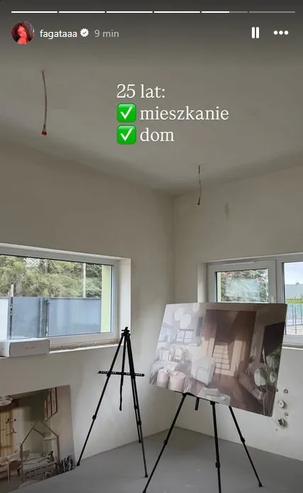 Fagata na swoich mediach społecznościowych pochwaliła się zakupem nowej nieruchomości. Influencerka tym razem została właścicielką domu - i to w zaledwie wieku 25 lat. Na InstaStory pokazała pierwsze zdjęcia ze środka w stanie surowym, ale już ma konkretne plany dotyczące jego urządzenia. Zdradziła, że w domu chce mieć własne studio nagraniowe, co tylko potwierdza, że Fagata nie zamierza zbyt szybko zejść ze sceny muzycznej.