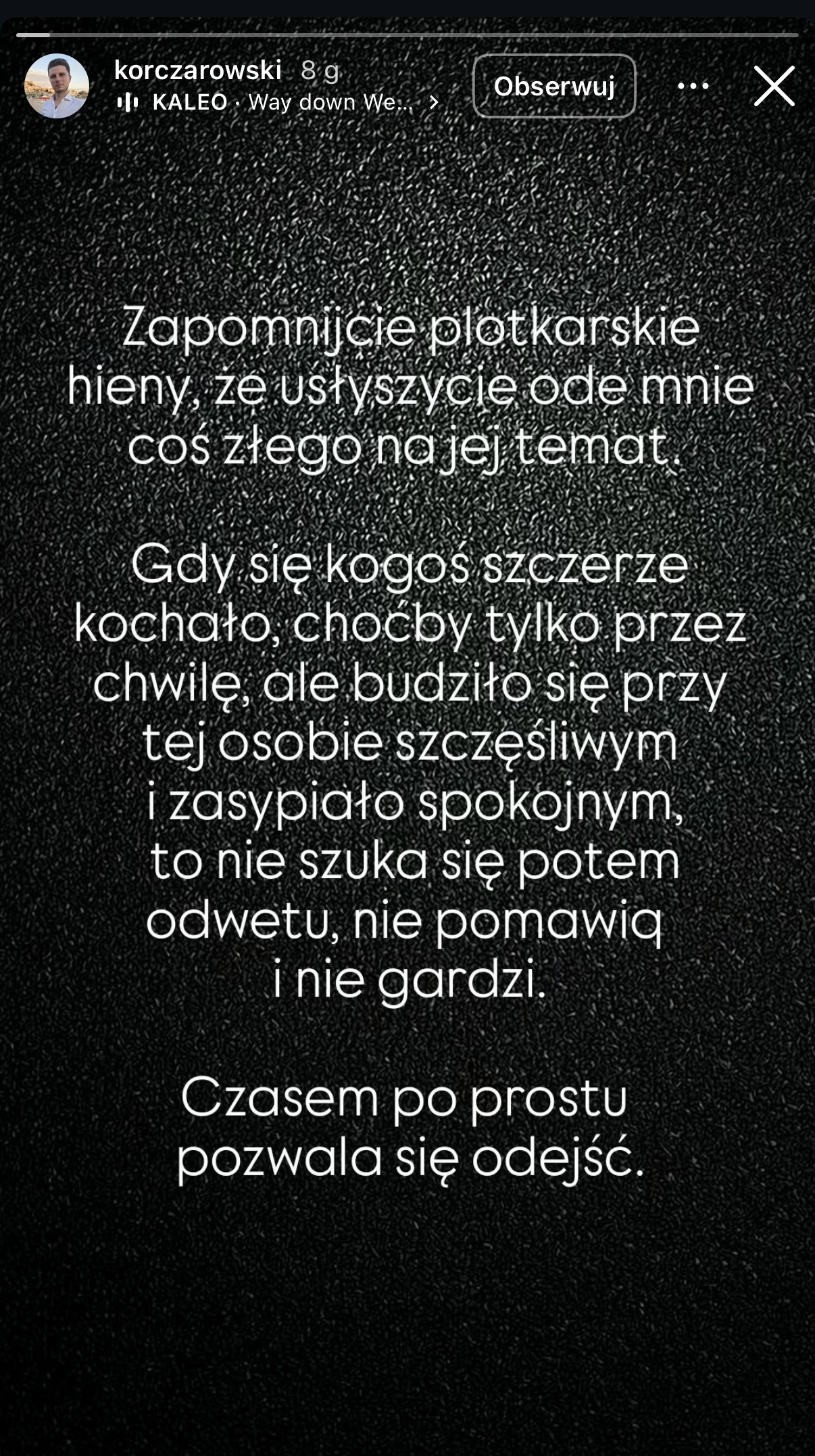 Również Piotr Korczarowski publicznie odniósł się do rozstania, publikując na swoim profilu na Instagramie krótkie, ale treściwe oświadczenie, w którym zapewnił, że nie powie złego słowa o Mariannie i że szczerze kochał swoją byłą partnerkę.
