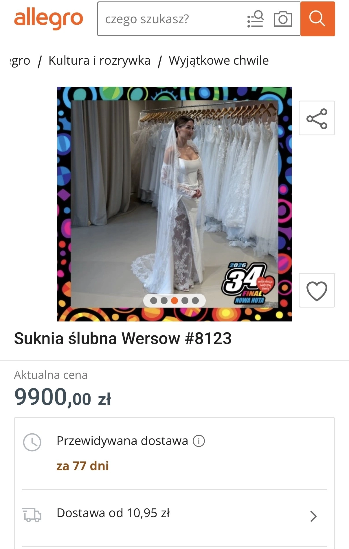 Warto przypomnieć, że influencerka w sierpniu 2025 roku wyszła za mąż za Friza. W dniu ślubu zaprezentowała dwie różne stylizacje - jedną, koronkową, przeznaczoną na ceremonię, oraz drugą, bardziej nowoczesną, z gorsetem, w której bawiła się podczas wesela. To właśnie tę drugą kreację postanowiła oddać na aukcję WOŚP. Do zestawu dołączono eleganckie rękawiczki oraz zupełnie nowy welon. Suknia marki Milla Nova została profesjonalnie wyczyszczona i ma być w nienagannym stanie. Aukcja od razu wzbudziła spore zainteresowanie i już po niespełna dobie cena osiągnęła poziom 9 900 zł.
